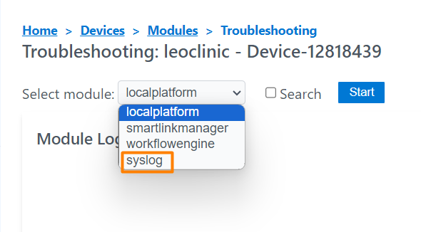 With this new option in the troubleshooting modules dropdown, the user will be able to access the system logs (syslog) where the logs of all the services running in the operating system (Ubuntu OS) can be reviewed.