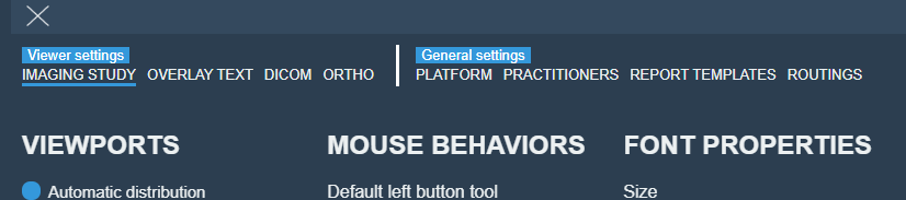 Improvements in the display of the settings view tabs. The tabs are now displayed sorted by type of settings in the imaging study settings view, providing better visual organization.