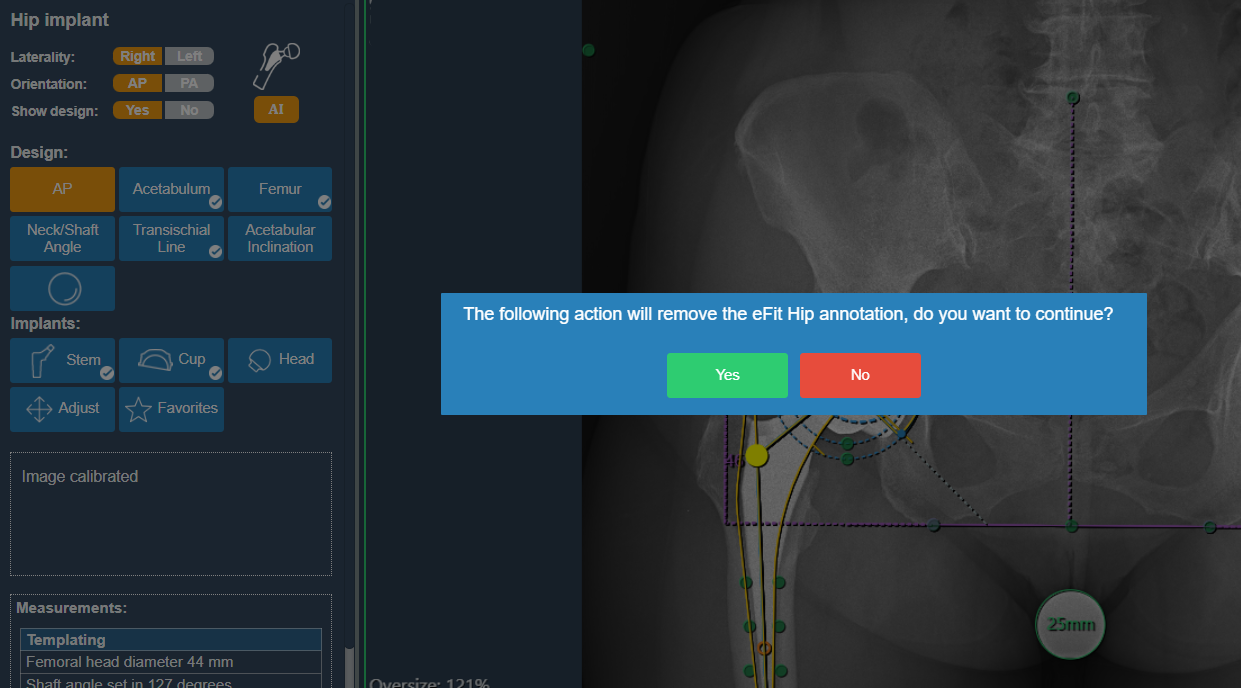 In the previous version to change this you had to cancel the operation, reopen the eFit dialog and select the desired laterality before running the AI. Now this can be done anytime, using the left and right buttons in the Laterality section.