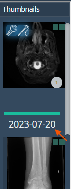 From this update, related studies attached to the open study will display the date below the green separator bar in the thumbnails, helping users identify the different studies added.