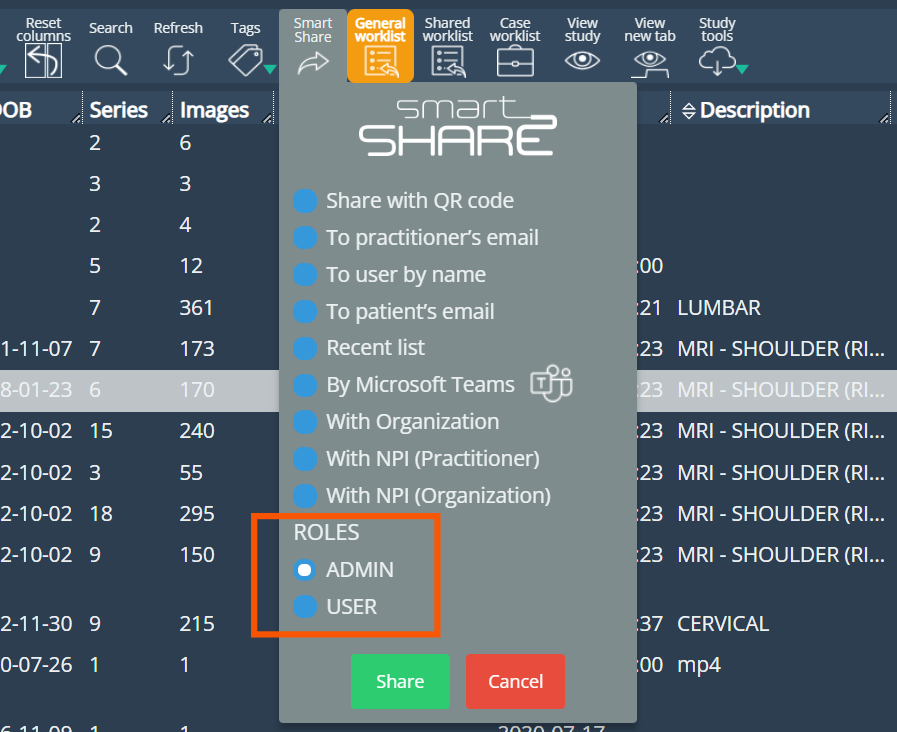 Internal practitioners in an organization have been given the option to SmartShare a study with all users of the same role simultaneously.