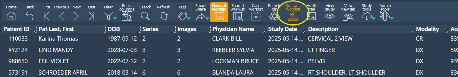 Quarantine Worklist button