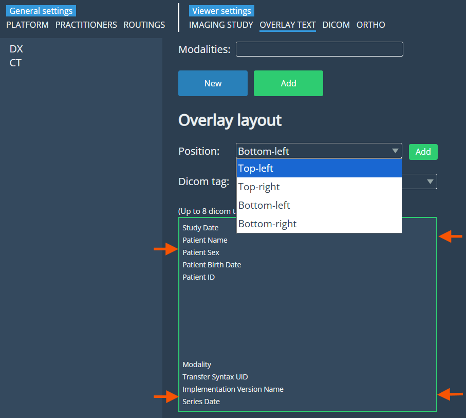 Imaging study settings: