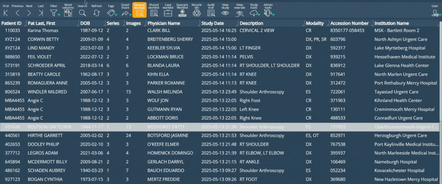 A new dual-search capability has been implemented in the search bar. Users can now search using two independent fields, with the option to leave the second field empty. This improves flexibility when searching for studies or patients.